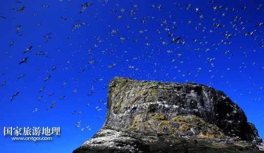 登上圣基爾達島并非易事,記者因風(fēng)高浪大在外赫布里底群島等待多日才有船出海。僅可乘載10余人的小船在風(fēng)浪中穿行了近3個小時,圣基爾達島終于出現(xiàn)在霧色籠罩的海面上。島上散落著十余座已經(jīng)荒蕪破敗的石舍和幾百個儲物石室,這些殘存的遺跡早已成為野羊與海鳥的巢穴,人類反而成為外來的訪客。人類文明的消失為一些稀有的物種和瀕臨滅絕的鳥類提供了安全的棲息地。島上陡峭的山坡隨處可見野羊悠然漫步,而那些嶙峋的峭壁和海礁則棲息著數(shù)十萬只各類海鳥。世界上最大的塘鵝群——約6萬對塘鵝在這座海島及附近的海礁上繁衍生息。