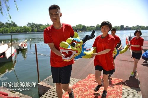 國家旅游地理 北京5月28日訊 5月28日,龍舟賽開始前,工作人員按照傳統(tǒng)儀式將“神龍”請上碼頭點(diǎn)睛。當(dāng)日,北京什剎海街道舉辦迎端午節(jié)系列活動(dòng),通過賽龍舟和纏繒子、吆喝表演等豐富多彩的民俗文化活動(dòng),讓端午節(jié)的傳統(tǒng)習(xí)俗回歸百姓生活,彰顯什剎海地區(qū)民俗文化的特色。新華社記者 李鑫 攝