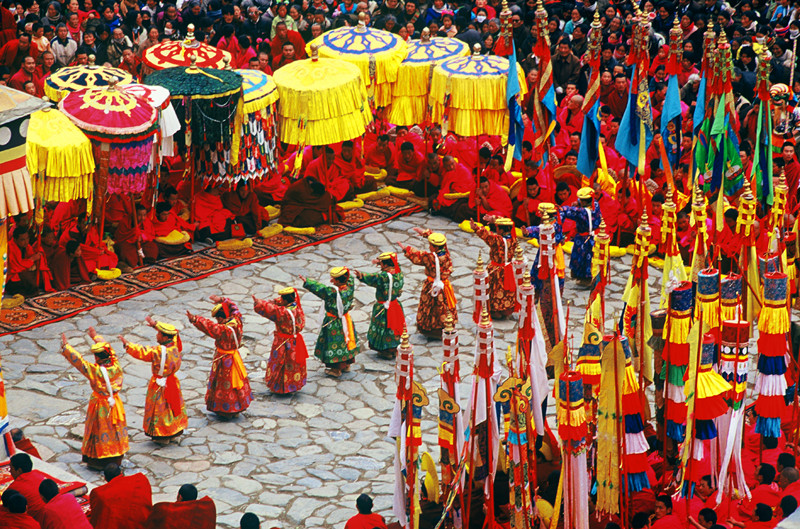 圖為夏河縣展演世界非物質(zhì)文化遺產(chǎn)——甘南藏戲