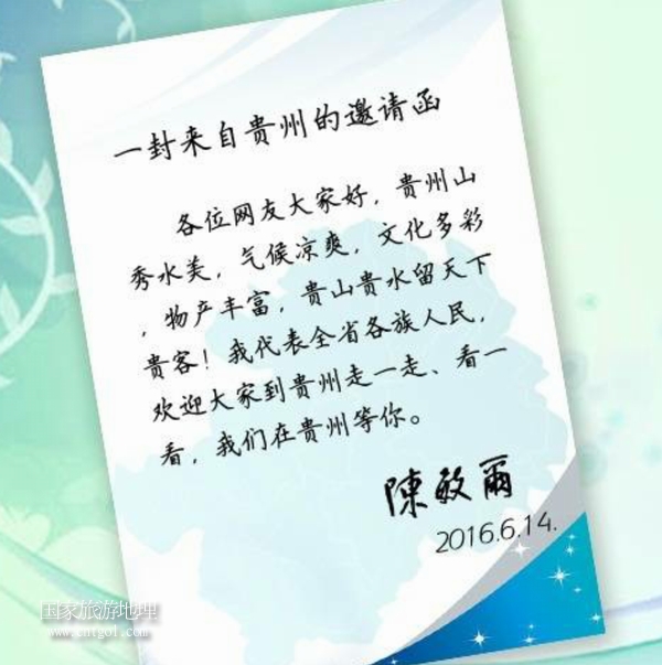 貴州省委書記陳敏爾網(wǎng)絡(luò)邀請(qǐng)大家到貴州旅游做客