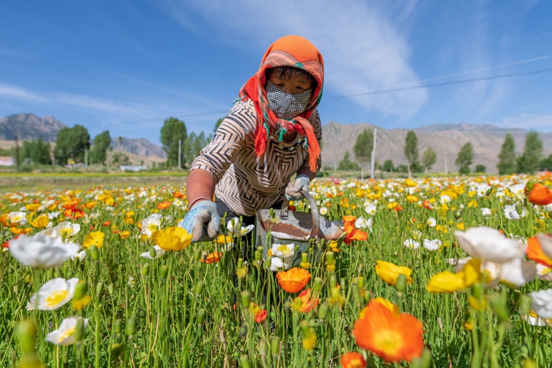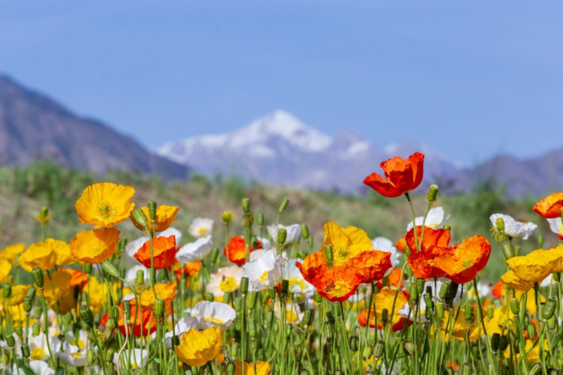 地處祁連山北麓高海拔山區(qū)的甘肅省高臺縣新壩鎮(zhèn)紅沙河村種植的虞美人繽紛綻放